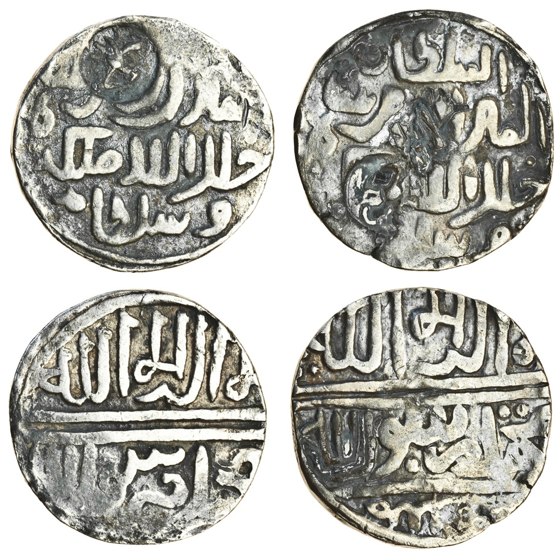 Tripura (late 16th century), counter-stamped Tankas (2), head of lion of Tripura on Chittagong, trade Tankas of governor Vamar Shah, AH988 (N. Rhodes, 'Some Coins Countermarked in Tripura,' JONS #203, Spring 2010, pp.14-16; host coins G & G. B.1017; Michiner, Land of Water 306), host coins about very fine, countermarks containing dark deposit but a little better, host coins rare, with this countermark they must be considered extremely rare (2)