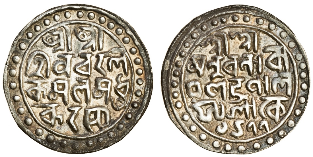 Cooch Behar, Nara Narayan (1487-1555), Tanka, 10.26g, Sk.1477, legend: Śrī Śrī/ Śiva Charana/ Kamala Madhu/ Karasya, with śi, ra in 2nd line and ra sya in 4th line in Nagari script, rev. Śrī Śrī/man Nara Nā/rāyana Bhupāla/sya Śāke/ 1477, both sides within circle and beaded border (RB. 5; Bose A-2.8; KM. 34), attractively toned large flan, extremely fine