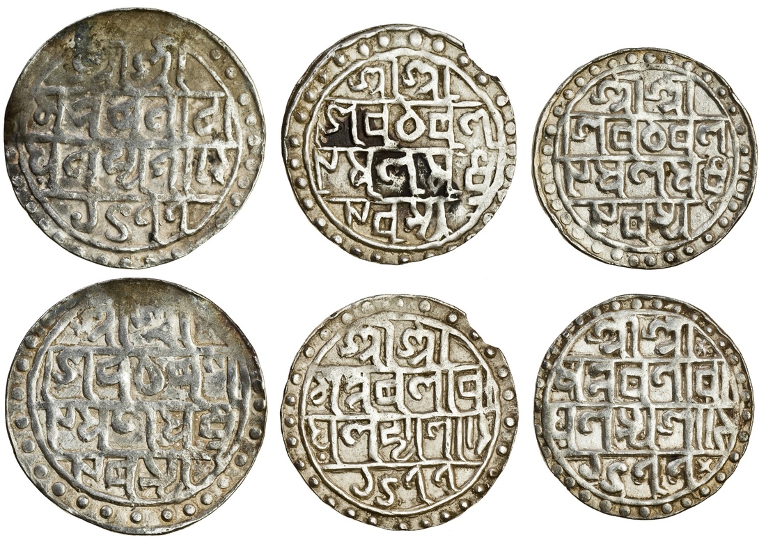 Cooch Behar, Nara Narayan (1487-1555), Tankas (3), 10.04, 10.11, 9.92g, Sk.1477, as previous lot, legends in Bengali script, the first on a large flan, the last with a star at the end of the first line of the reverse (RB. 15, 16; Bose A-6.7, 26, 42; KM. 36), about very fine to good very fine (3)