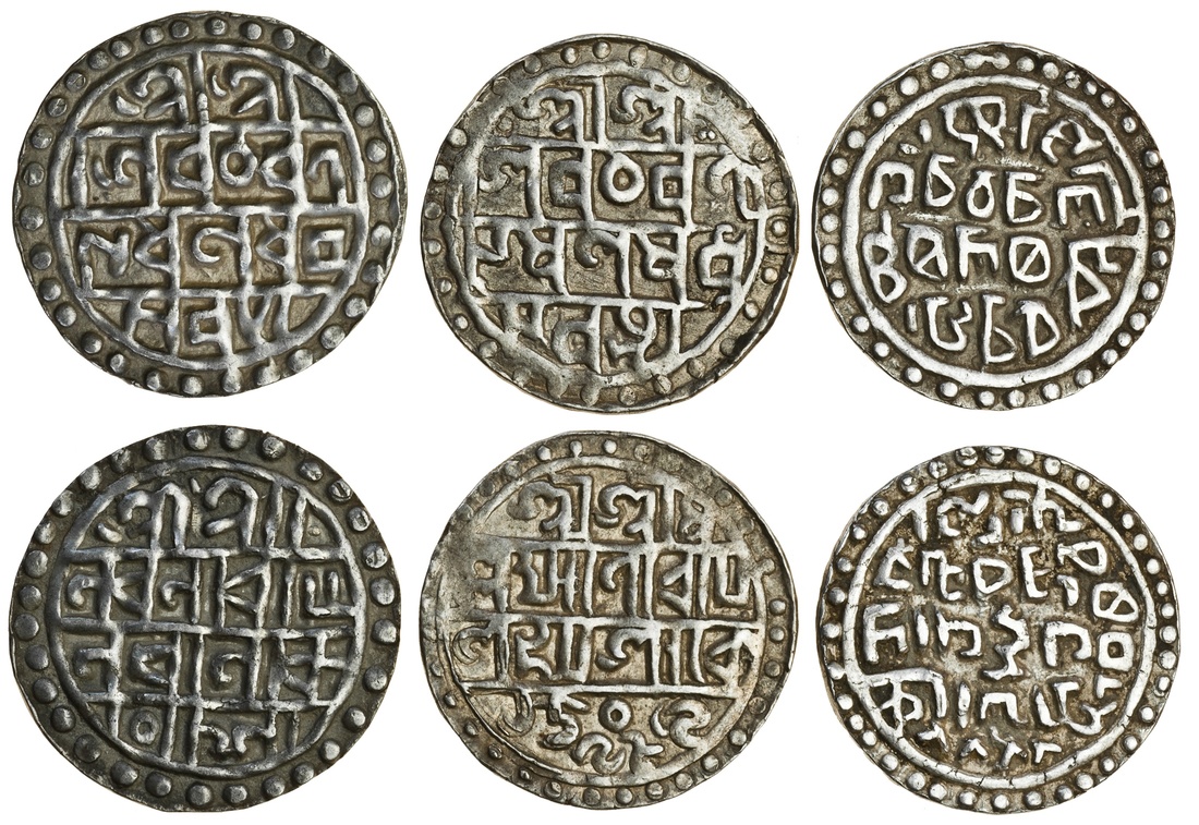 Cooch Behar, Laksmi Narayan (1587-1627), Tanka, 10.11g, Sk.1509, year 98 as previous lot, together with apparent copy of a Tanka of Nara Narayana, 10.18g. with mirror-image script, and a fantasy Tanka, 10.06g, with illegible script (RB. 22; Bose B-2.9, KM. 45), very fine to extremely fine (3)