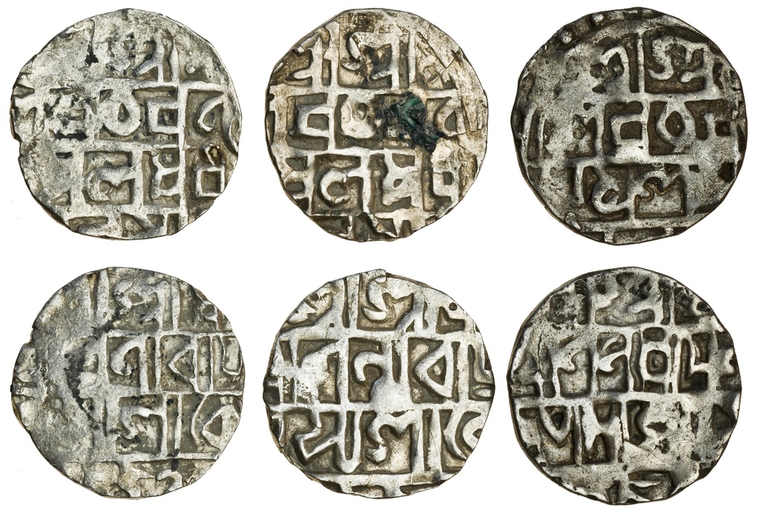 Cooch Behar, Prana Narayan (1633-65), Half-Tankas (3), 4.86, 4.87, 4.55g, Sk.1554 (where visible), as previous lots, legends partly visible (RB. 41; Bose D-5.3, 5.5, 5.7; KM. 72), one with spot of verdigris, good fine to about very fine (3)