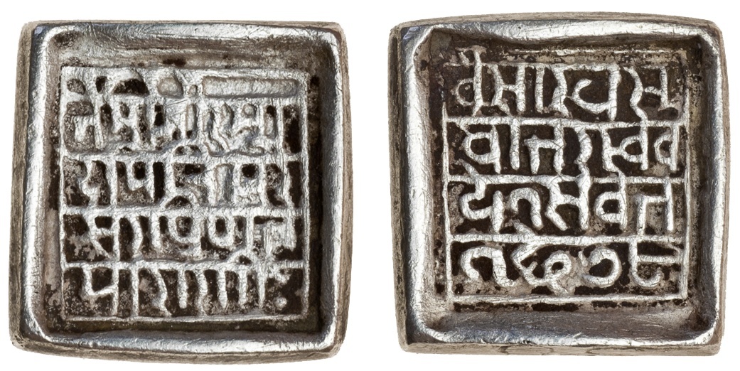 Manipur, Gaura Simha (c.1756-1764), square Rupee, 11.96g, Sk.1678, legends both sides, Jesrī Gaura Sīm/hā Manipure/sva Priyāta/mā Rānīh, rev. Vaisakh Su/dhī Terakhava/de 1, Samvat/ 1678, within a square frame, form of ‘6’ is unusual (RB. 8; KM. 23), toned very fine, extremely rare