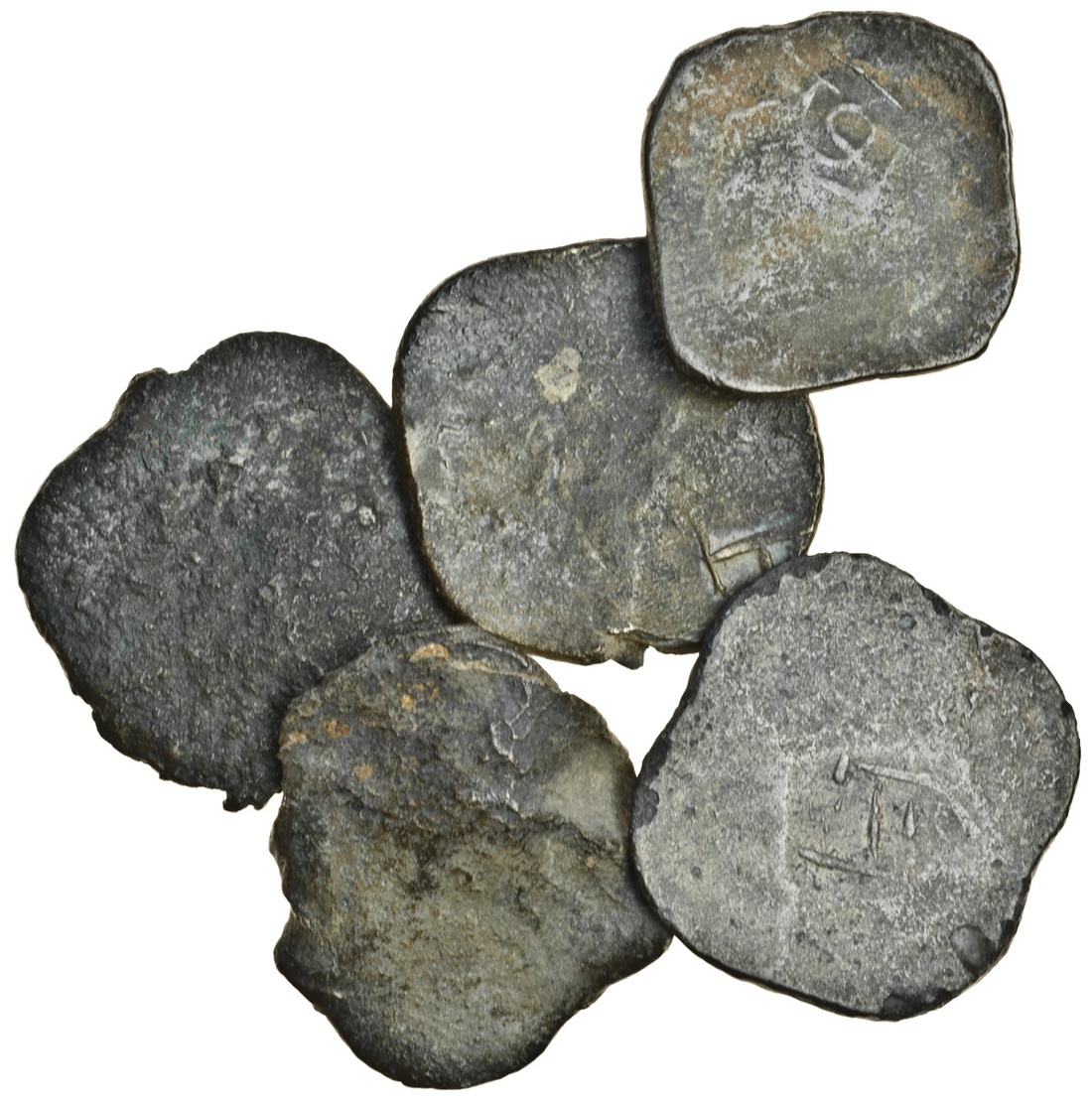 Manipur (18íth century), large anonymous uniface Sels (5), with various letters or partial inscriptions on obverse (RB. p.47-48), crude fine to very fine, rare (5)
