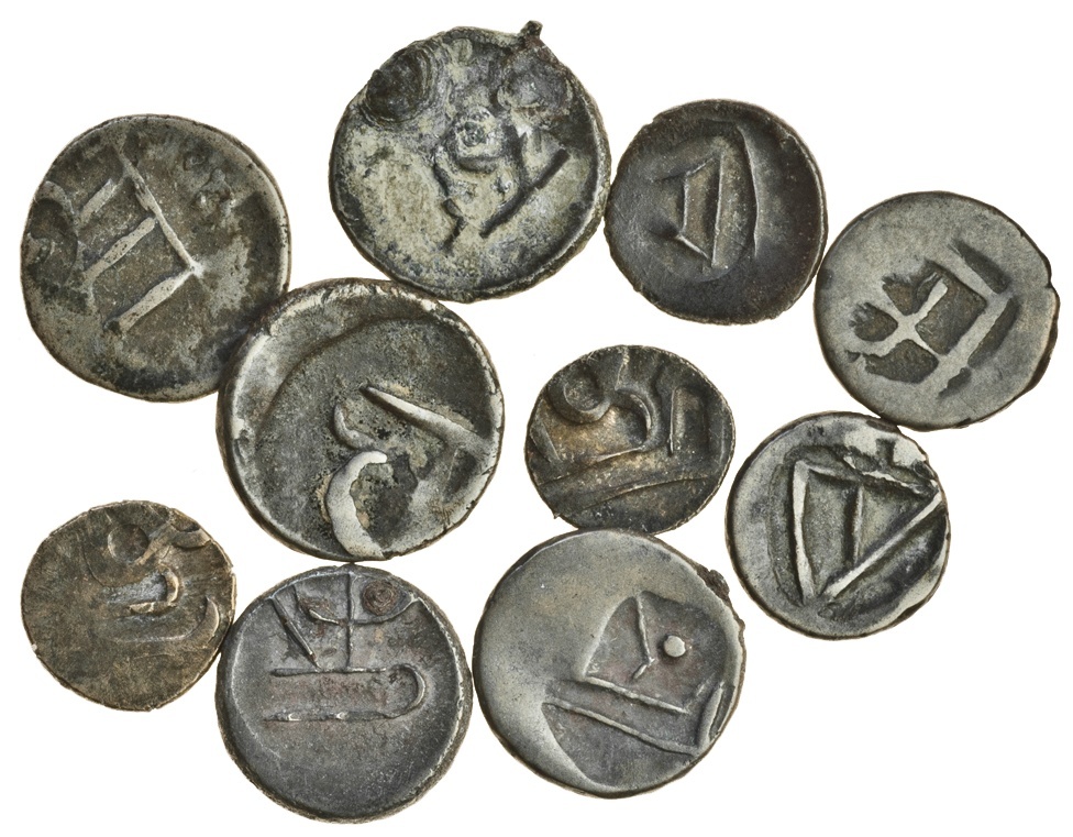Manipur, group of 10 base-metal uniface Sels, as previous lot, with legends mā (2), bha?, rā (2), śri (2), others (3) (RB. pp50-51), crude fine to very fine (10)