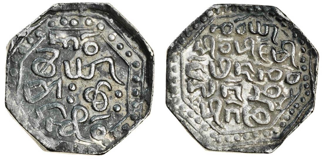 Assam, Chakradhvaja Simha (siu-pung-mung) (1663-70), octagonal Rupee, 11.03g, as previous lot (RB. 7; KM. 10), dark obverse toning, very fine, scarce