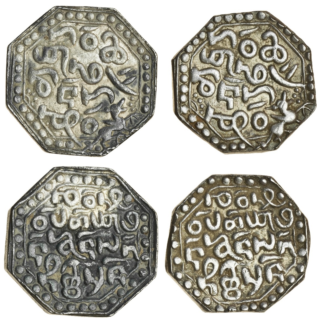 Assam, Gadadhara Simha (Siu-pat-pha) (1681-96), octagonal Rupees (2), 11.21, 11.19g, as previous lot but obverse with a lion lower right (RB. E2.1, E2.2; KM. 29), the first with obverse darkly coloured, both very fine (2)