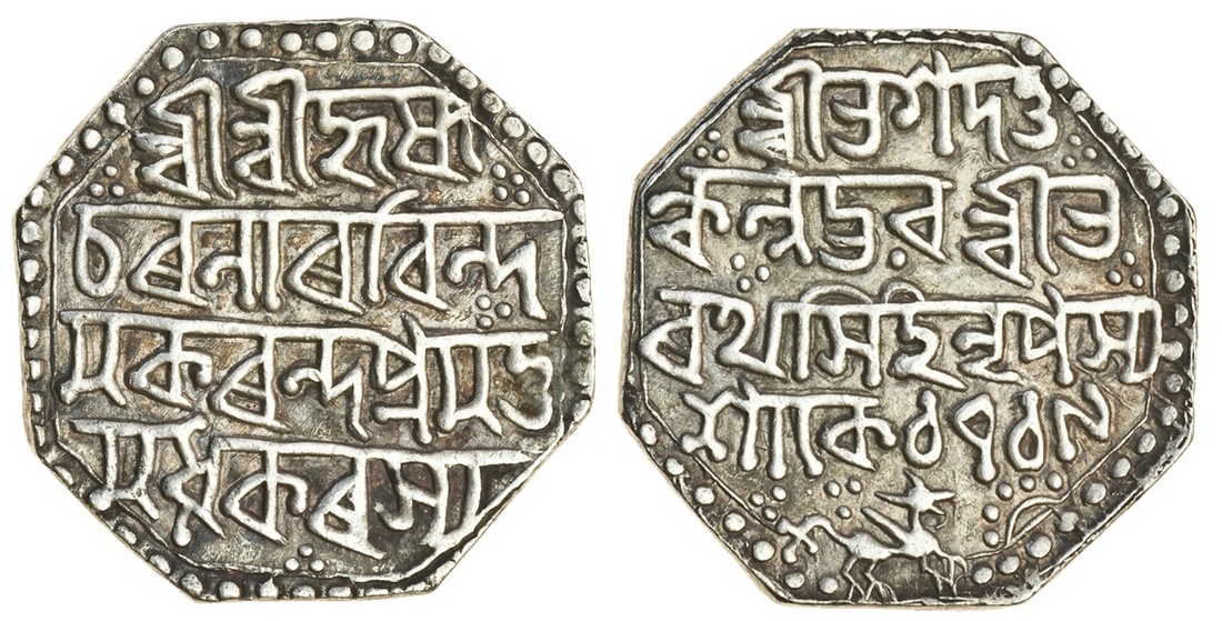 Assam, Bharatha Simha (1789-94, 1796-97), octagonal Rupee, 11.30g, Sk. 1719, as previous lot (RB. W10.1; KM. 405), good very fine, scarce