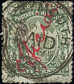 ½d. green, cancelled by small part of squared-circle datestamp; fine. RPSNZ Certificate (1997). ER1; S.G. P1, £1,400. Photo