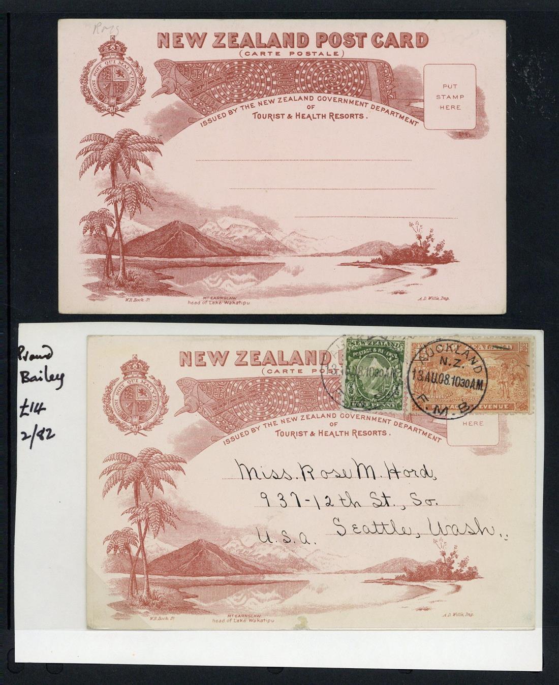 A selection with a rare "Nugget" card unused featuring 1898 Pictorial designs, a similar card with a different selection of values, on thick board, , Zieher style card "Sold in aid of the sanatoria Home for Consumptive Women." unused and used (2), Waterlow ½d. (2, unused) and 1d. used, 1d. lettercard unused and a selection of the New Zealand Tourism & Health Resorts Series 1 Type A back complete set plus five extras with twelve used and one with spectacular T.P.O. cancellation, Series 1 Type B back (5, four used), Series 2 unused and Series 1 Type B rare blue cards featuring Lake Kanieri; accompanied by write-ups on the cards, auction listings, etc.