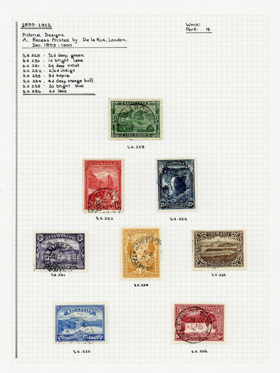 1899-1912 Pictorials collection (75) including 1899-1900 set used, 1902-05 litho ½d. compound perf. mint and 2d. used with manuscript "Threepence", 1905-12 litho 2d. compound perf. 12½ and 11 and 11 and 12, both mint, and 12½ and 12 used, 3d. (2), 4d. (5) and 6d. (2) used, 1905-11 typo 1d. compound perf. of 11 and 12, and 12½ and 12, both mint, 2d. perf. 11x12 and compound of 12½ and 11, both mint; generally good to fine