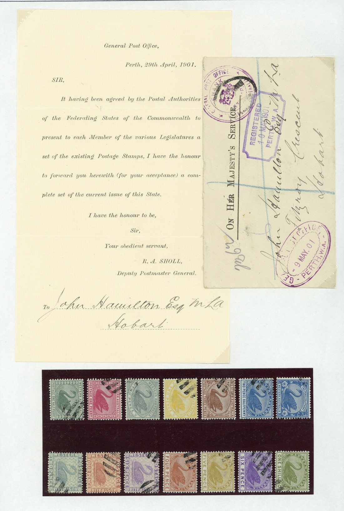 The following six lots were presented to James Hamilton Esq. on the eve of the amalgamation of the states' postal departments into a federal department.