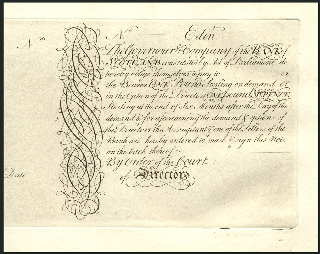 Bank of Scotland, a double proof pull for a £1 and sixpence with a six month option clause, ND (ca 1732), black and white, ornate scrip and issued on behalf of the Court of Directors, watermarked paper