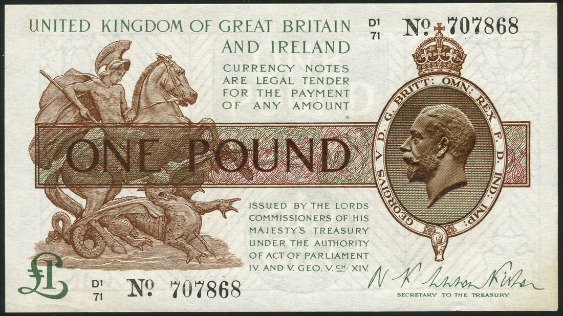 Treasury Series, N.F.Warren-Fisher, £1 (2), ND (1919/1923), prefixes U/93 and D1/71, green, lilac brown and white, George V at right, Saint George and the dragon at left