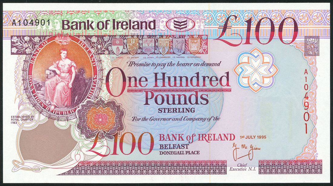 Bank of Ireland, £50, 1995, green and £100, 1995, red, both McGinn signature