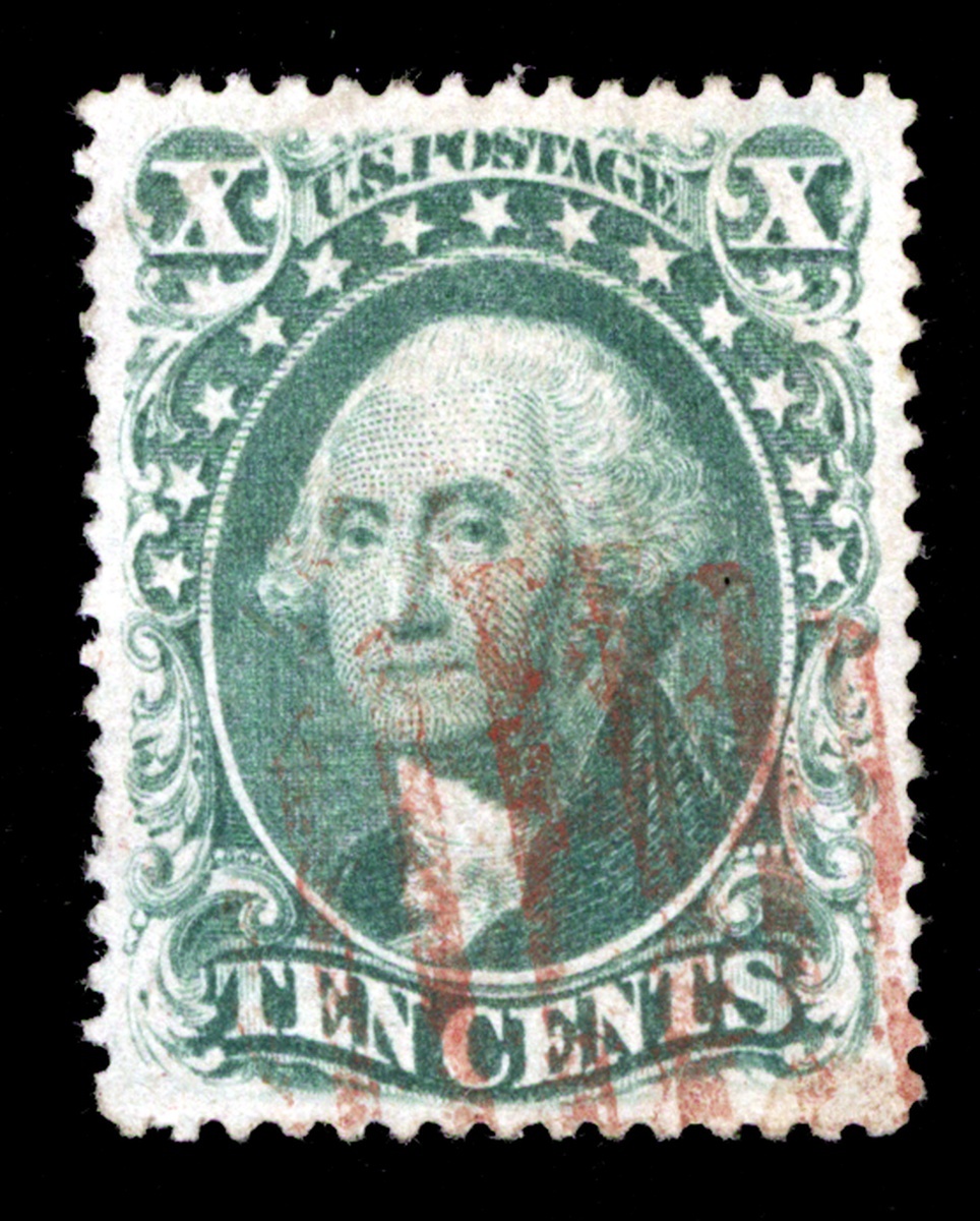 #33, 10c Green, Ty. III, used with light and unobtrusive red open grid cancel, beautifully centered within large balanced margins, bright and fresh, extremely fine; 2016 PF certificate.