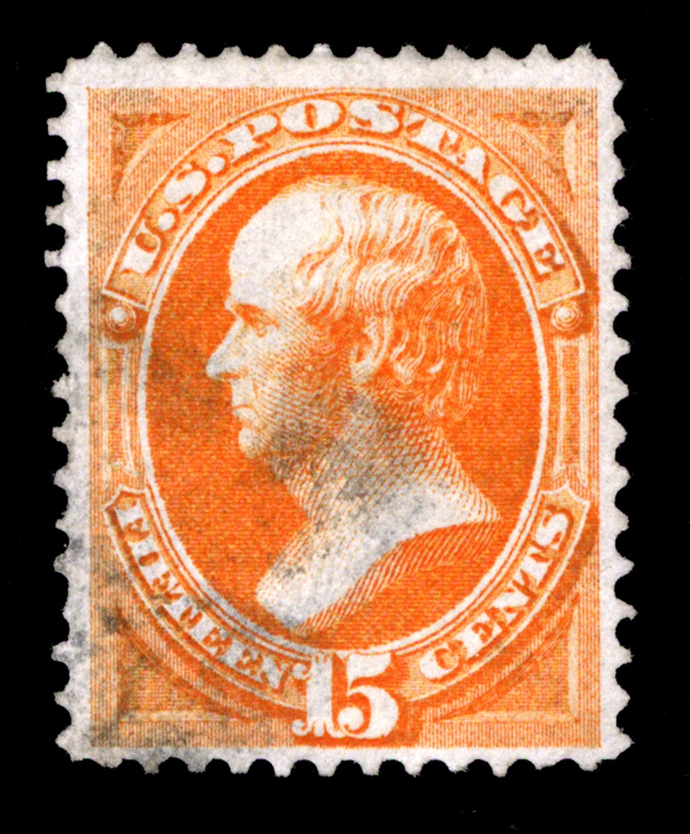#141, 15c Orange with grill, used single with light cancel, quite well centered for this scarce grilled stamp, bright fresh color, discernable "H" grill, single creased perforation at left, otherwise very fine and attractive; 2017 PF certificate.