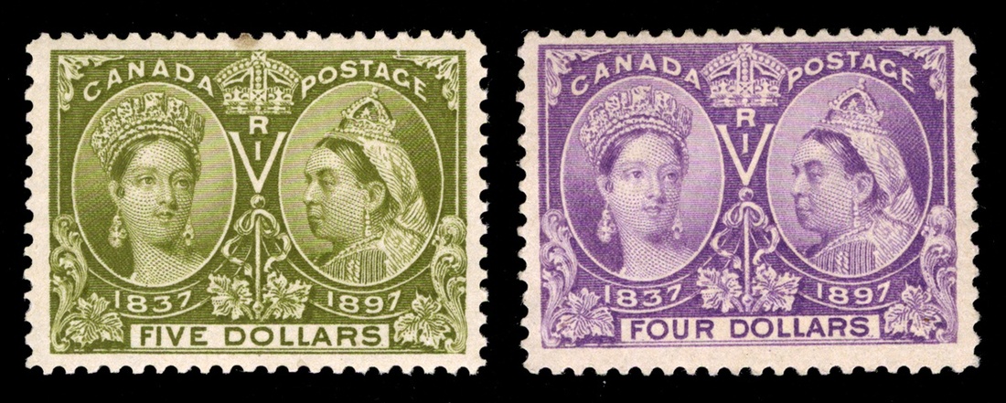 #50-65, 1897 ½c-$5.00 Jubilee cplt, generally fresh and well centered, o.g., ½c and 10c l.h., $2.00 with a concealed shallow thinned spot, $3.00 expertly regummed, $4.00 n.h. with fingerprint on gum and $5.00 with a tiny hinge in the top right corner and a stained perf. at top, the others all n.h., fine-very fine.
