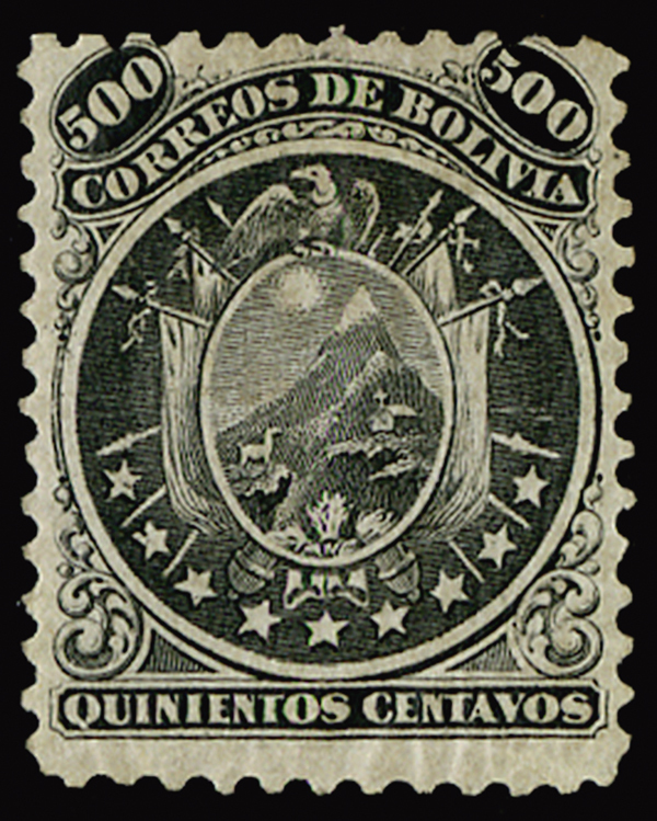 #14, 1868-69 500c Black, Nine Stars, deep shade, displaying a remarkable freshness, slightly centered to top but well centered horizontally, o.g., fine.