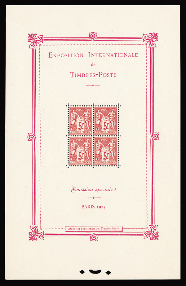 #226, 1925 Philatelic Exhibition souvenir sheet, o.g., n.h., couple light fingerprints on gum and trivial inclusion, very fine; quite a bit nicer than typically found.