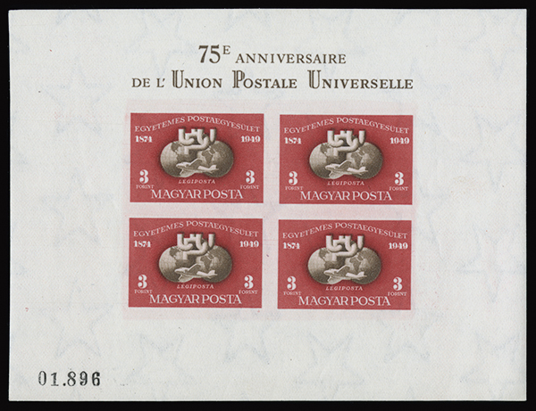 #C81, C81 Footnote, 1950 3fo U.P.U. perf. and imperf. souvenir sheets of four, o.g., n.h., very fine.