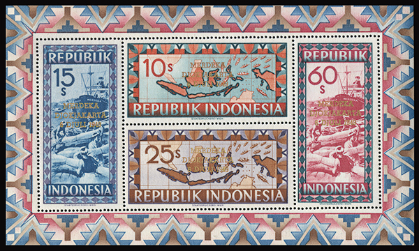 #117, 1949 10s-60c Liberation of Jakarta souvenir sheet, o.g., n.h., very fine and scarce.