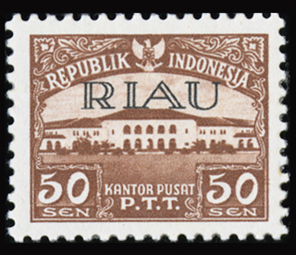 Riau Archipelago #1-22, 1954 5s-35R Definitives overprinted "RIAU" cplt., o.g., l.h. or light h.r., 10R creased (cat. $6.75) otherwise a very fine and scarce set.