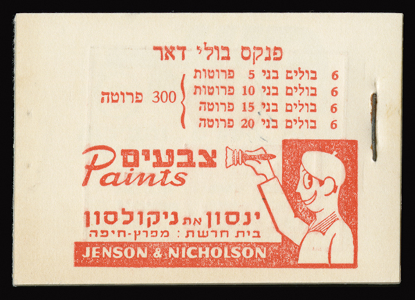 Bale #B1, B2a, B3b, 1949 Doar Ivri unexploded booklets, comprised of buff with Peugeot advert, with "gift boxes of oranges" advert and white with "gift boxes of oranges" advert, fresh and very fine.