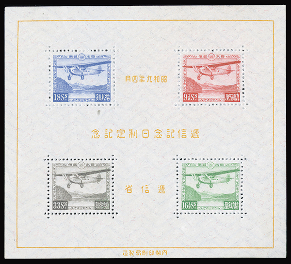 #C8, 1934 Communications souvenir sheet, o.g., l.h., fresh and very fine.