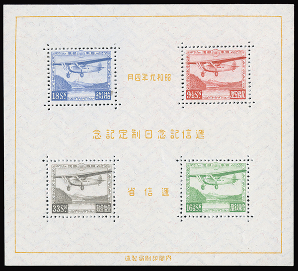 #C8, 1934 Communications souvenir sheet, o.g., h.r., the stamps n.h., very fine.