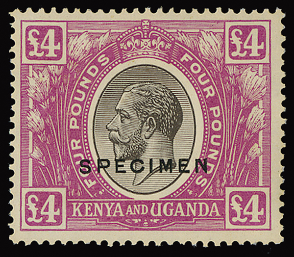 #40s, 1925 £4 Rose lilac and black, overprinted "SPECIMEN," o.g., l.h., very fine (S.G. #98s; £475).