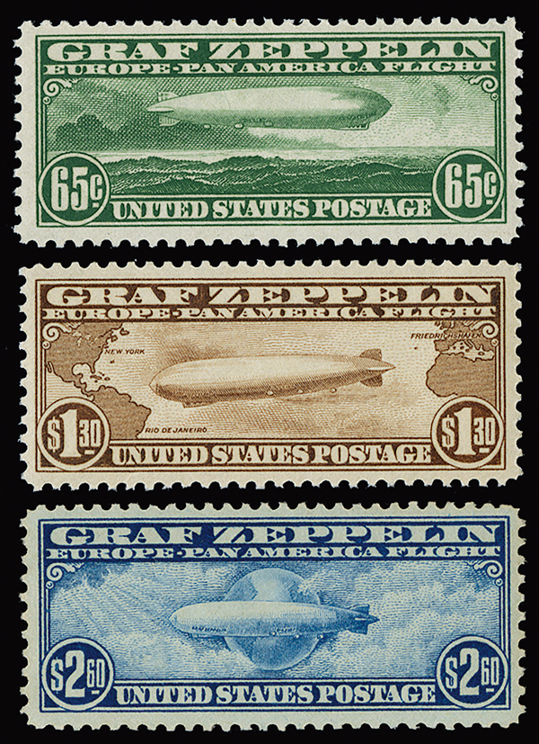 #C13-15, 65c-$2.60 Graf Zeppelins cplt., attractive mint set, well centered, o.g., n.h., very fine.