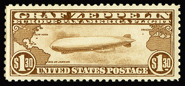 #C14, $1.30 Graf Zeppelin, beautifully centered within balanced margins, rich color on fresh paper, o.g., l.h., extremely fine; PSE graded and encapsulated (XF-Sup 95; SMQ $475.00).
