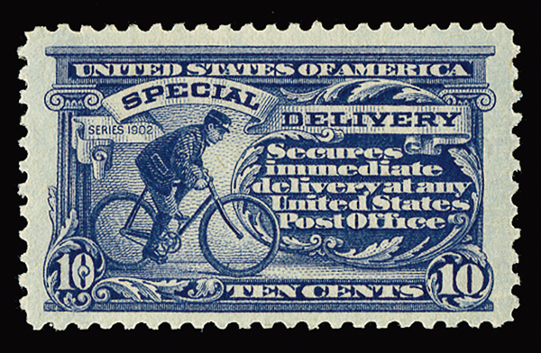 #E11c var., 10c Blue, pink back, well centered within unusually large margins, rich characteristic color, o.g., l.h., choice very fine; Scott states that the "pink back" variety commands a price of five times the normal stamp; 2007 PSE certificate (VF-XF 85; SMQ $345.00 as normal).