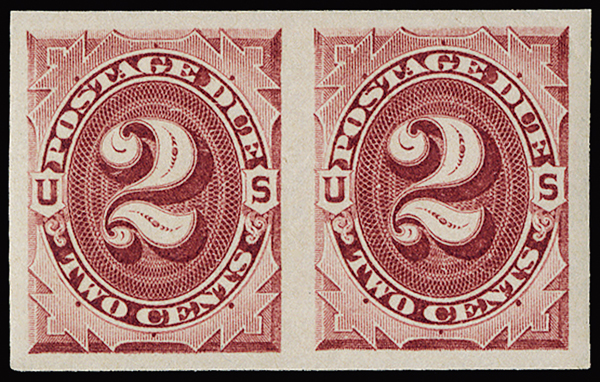 #J23P5, 2c Bright claret, plate proof on stamp paper, four huge equal margins, full fresh o.g., never hinged, extremely fine and choice.