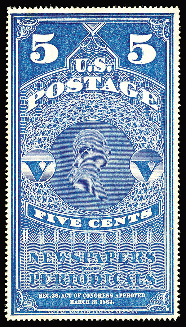 #PR4a, 5c Dark blue, without gum as issued, particularly well centered, strong color on crisp clean paper, choice very fine; 2017 PF certificate.