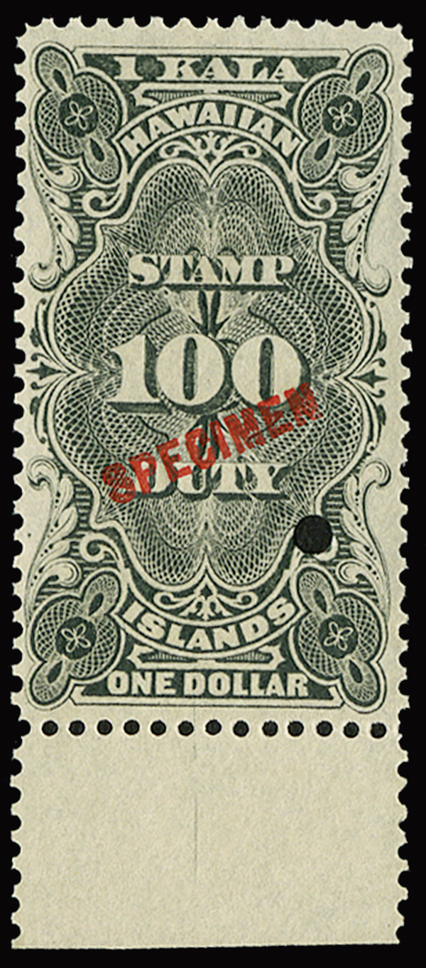 #R14S, $1.00 Black revenue, with "Specimen" ovpt., and security punch hole, bottom margin single, o.g., n.h., fine; 2015 PF certificate.
