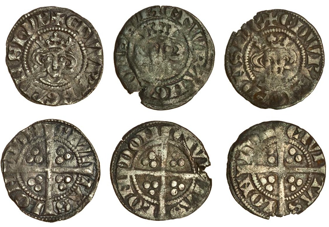 Edward I (1279-1307), Halfpennies (3), London, Class 3bc, 0.67g, crowned facing bust, drapery of curved line, wedges above, +edvvr’angl’dnshyb, rev. civi tas lon don, dark tone, very fine, Class 3c-e (2), 0.58g, drapery of two wedges, +edwr’angl’dnshyb, chipped with a crack, worn, nearly fine, another, 0.54g, about fine (N1044, N.1045/1; S.1431, S.1432; Stewartby p.177, IIIbc, IIIc), the first rare (3)