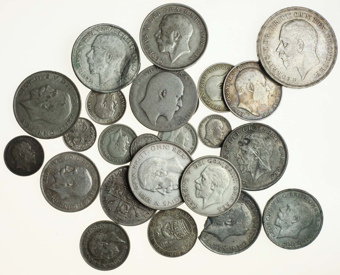 George V (1910-36), miscellanous coins (20) and counterfeits (4), including Crown, 1935, Halfcrowns (4), Florins (4), Shillings (3), Sixpence (4), Threepence (4), counterfeits of Halfcrowns (3), Florin, good fine to uncirculated (24)