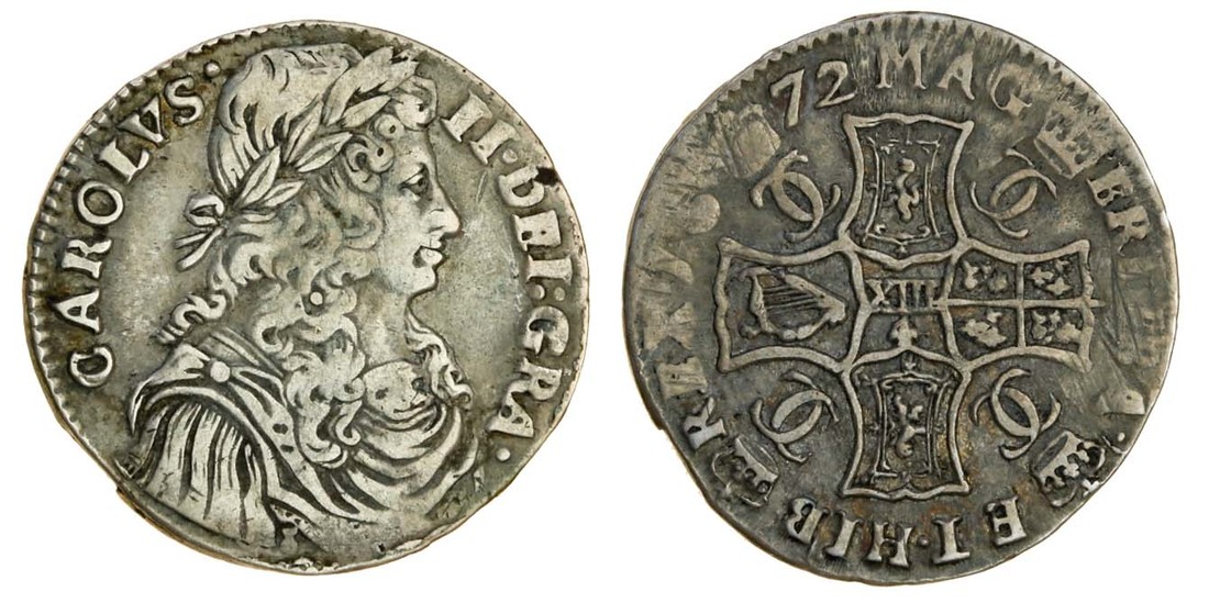 Scotland, Charles II (1660-85), Merk, 1672, laureate, cuirassed bust right, rev. four crowned shields cruciform (S.5611), good fine, the obverse better