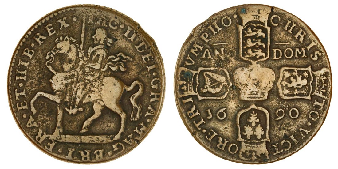 Ireland, James II, 'Gunmoney' (1688-91), Crown, 1690, king on horseback left, rev. crowned shields cruciform (S.6578), good fine
