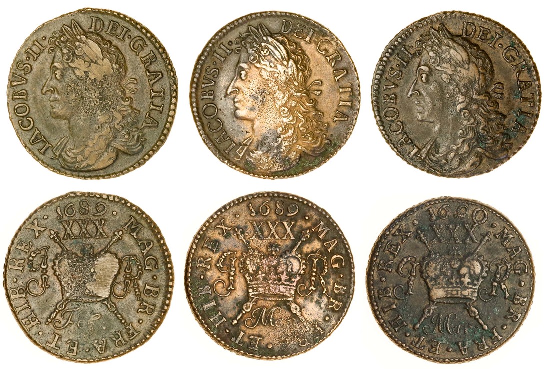Ireland, James II, 'Gunmoney' (1688-91), Halfcrowns (3), 1689, February, March; 1690, March, draped and laureate bust left, rev. crown over sceptres, value above, month below (S.6579K; L; M), generally good fine, the second better (3)