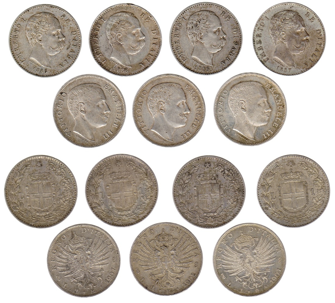Italy, Kingdom, Lira (7), 1886 (3), 1887, 1901, 1902, 1907, very fine or better, the 1901 extremely fine (7)