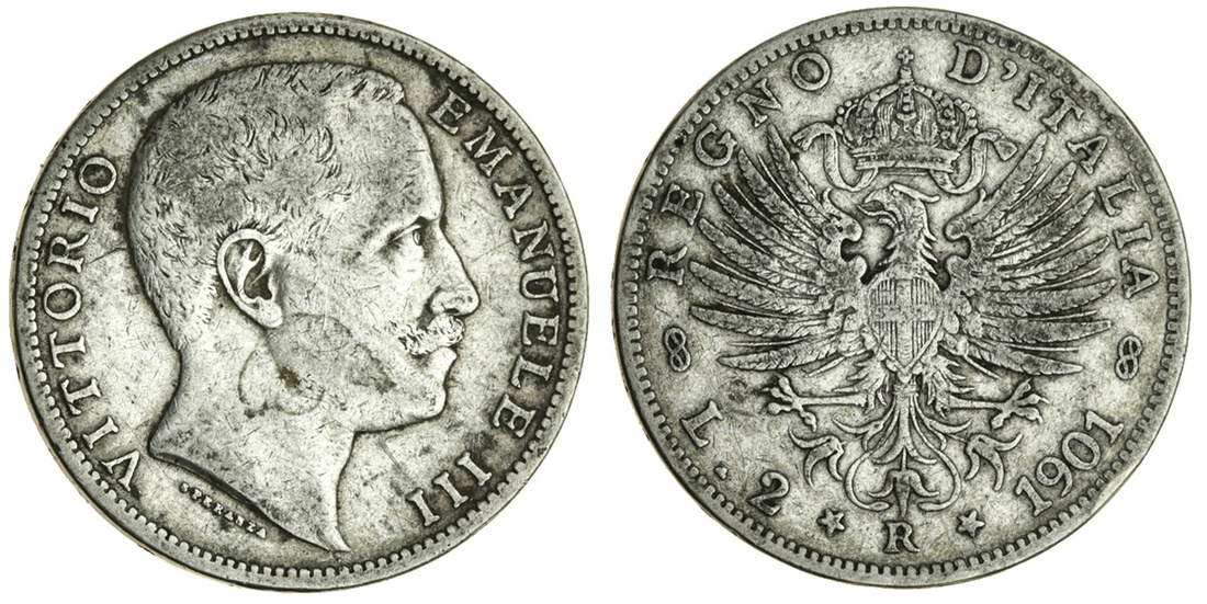 Italy, Vittorio Emanuele III (1900-46), 2-Lire, 1901R, head left, rev. crowned eagle with savoy shield (KM 33; Mont.140; Pag.725), fine, rare