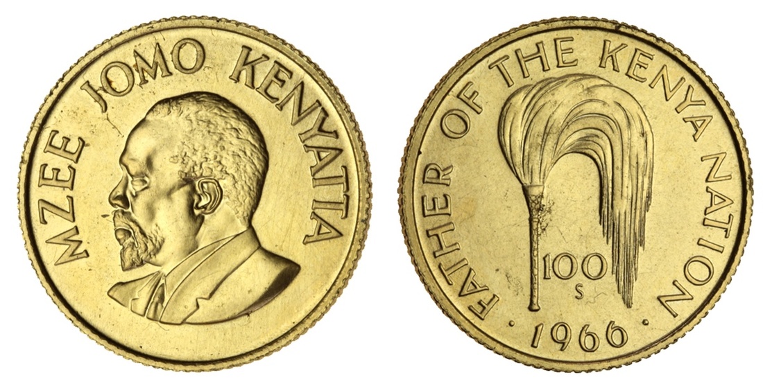 (g) Kenya, Republic, gold 100-Shillings, 7.7g, 1966, 75th anniversary of birth of President Jomo Kenyatta, bust of Kenyatta left, rev. fly whisk (KM 7), about uncirculated