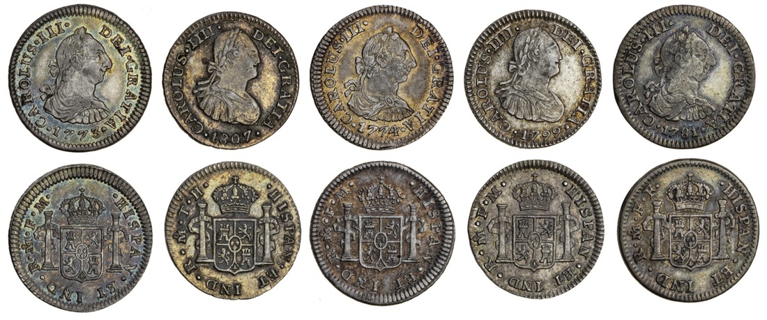 Mexico, Half-Reales (5), 1773 FM, 1774 FM, 1781 FF, 1791 FM, 1807 TH, the 1781 very fine, the others extremely fine or better and lustrous (5)