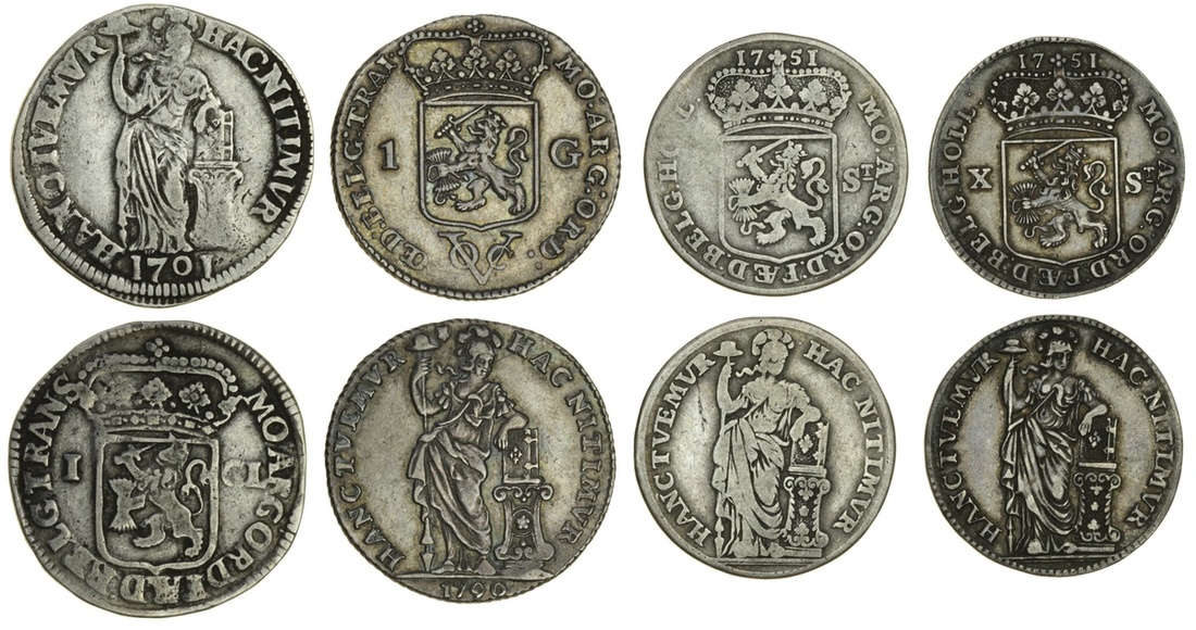 Netherlands, Utrecht, Gulden, 1790 VOC (Del.1189; Scho.66b), very fine, Holland, 10-Stuivers, 1751 (2), fine and very fine, Overyssel, Gulden, 1701, fine (4)