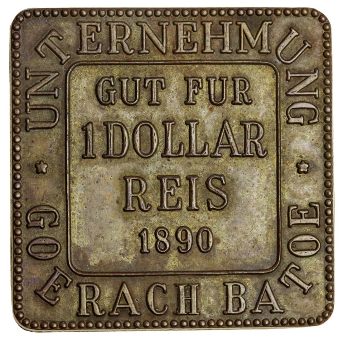 Netherlands East Indies, Sumatra, Unternehmung Goerach Batoe, plantation money, 1-Dollar, 1890, brass 35mm. x 35mm. (Lansen Wells 96 - RR; Scholten 1062a), extremely fine, rare