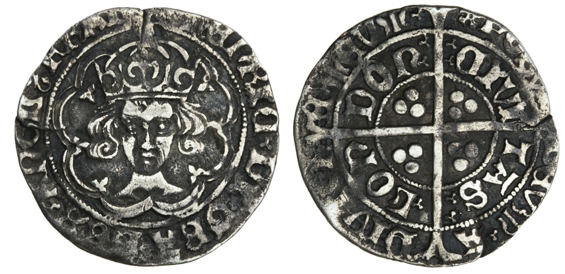 Henry VII (1485-1509), Groat, class II, London, 2.74g, m.m. cinquefoil, facing bust, crown with two plain arches, rev. long cross and pellets, single and double trefoil stops (N.1704; S.2195), striking split at 12 and 9 o'clock, otherwise good fine