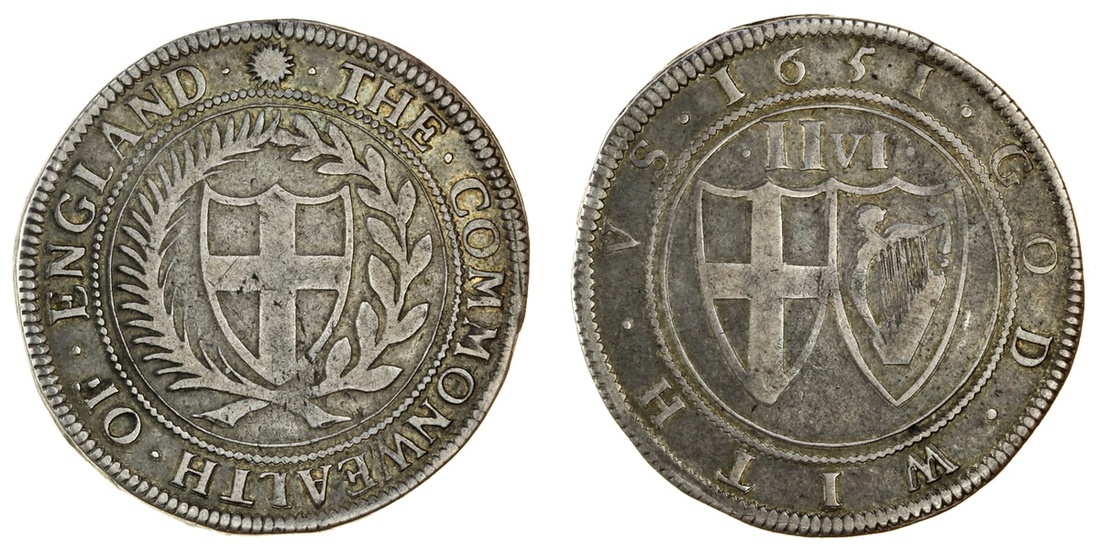 Commonwealth (1649-60), hammered pattern Halfcrown, 14.64g, 1651, m.m. sun, by Simon (?), shield of England within palm and laurel wreath, hairline within beaded border both sides, rev. medal alignment, conjoined shields of England and Ireland, mark of value above, edge plain (ESC 65 {444B} [R7], this coin; N.-; S.-), toned, fine and of the highest rarity