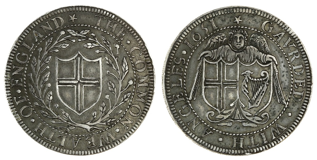 Commonwealth (1649-60), pattern Halfcrown, 19.79g (305.4gr), 1651, 32mm., m.m. mullet, by Ramage, tooth border and twisted rope inner circle, the. common. wealth. of. england, shield of England within laurel wreath, rev. coin alignment, gavrded. with. angeles., facing angel over conjoined shields of England and Ireland, edge trvth. and. peace. 1651. with mullet stops (Bergne, no. 6; ESC 66 {445} [R5]; N.2733; S.-), toned, about extremely fine, with a fine pedigree and of the highest rarity